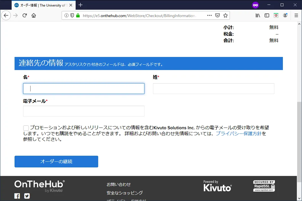 こちらも怖いですが同じく「ご注文手続き」をクリックです。