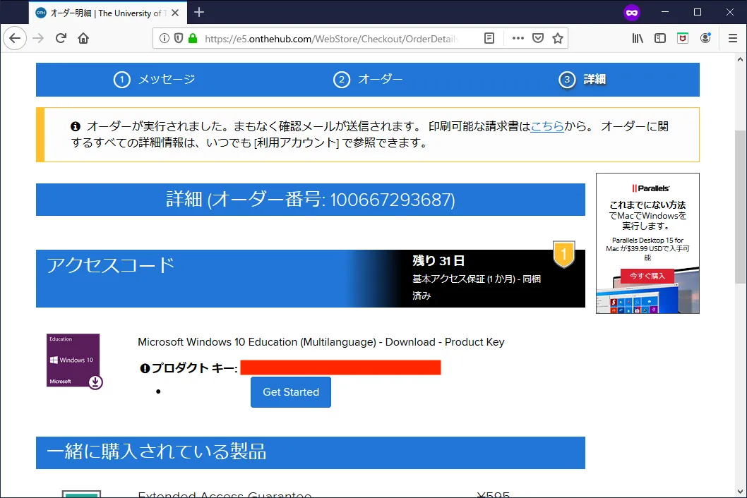 おめでとうございます!Windows 10 Education のプロダクトキーが発行されました!