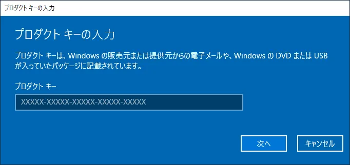 先ほど発行されたプロダクトキーを入力しましょう。